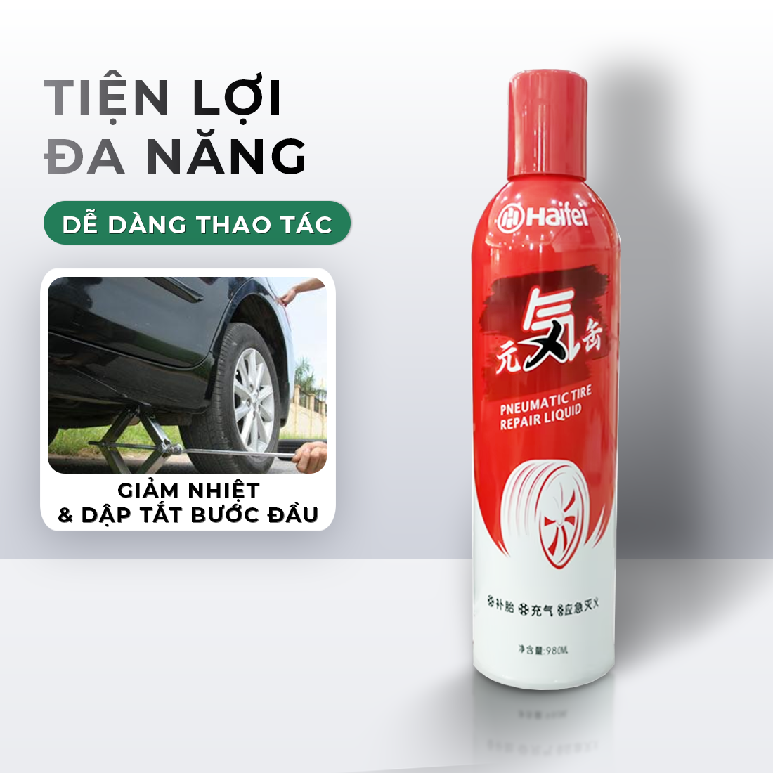 Dung Dịch Vá Lốp Ô Tô 980ml – Tự Vá Lốp Trong 3 Phút + Dùng Làm Bình Chữa Cháy Khẩn Cấp