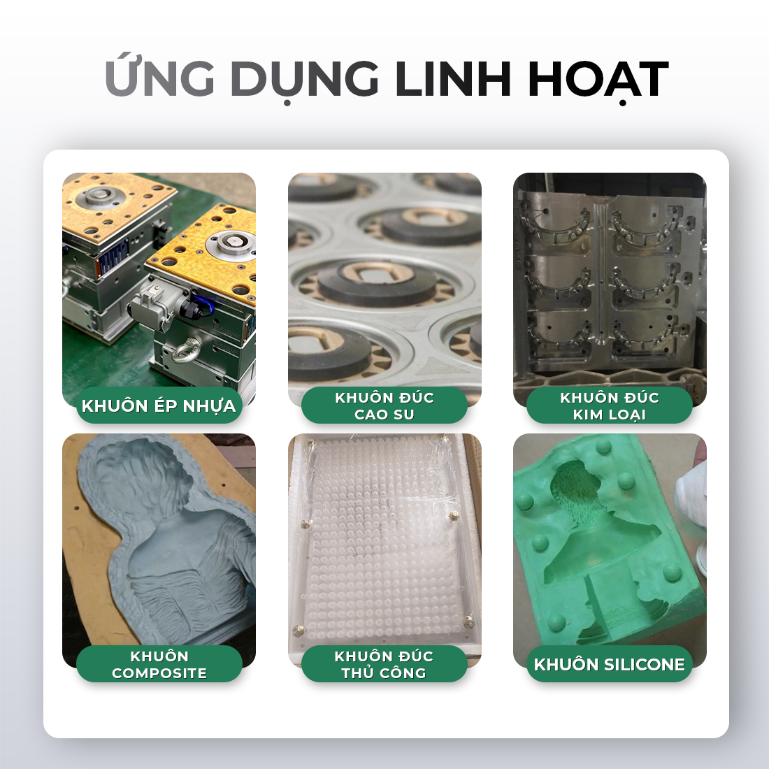 _Sử dụng trong các quy trình ép phun, nén khuôn hoặc ép đùn.